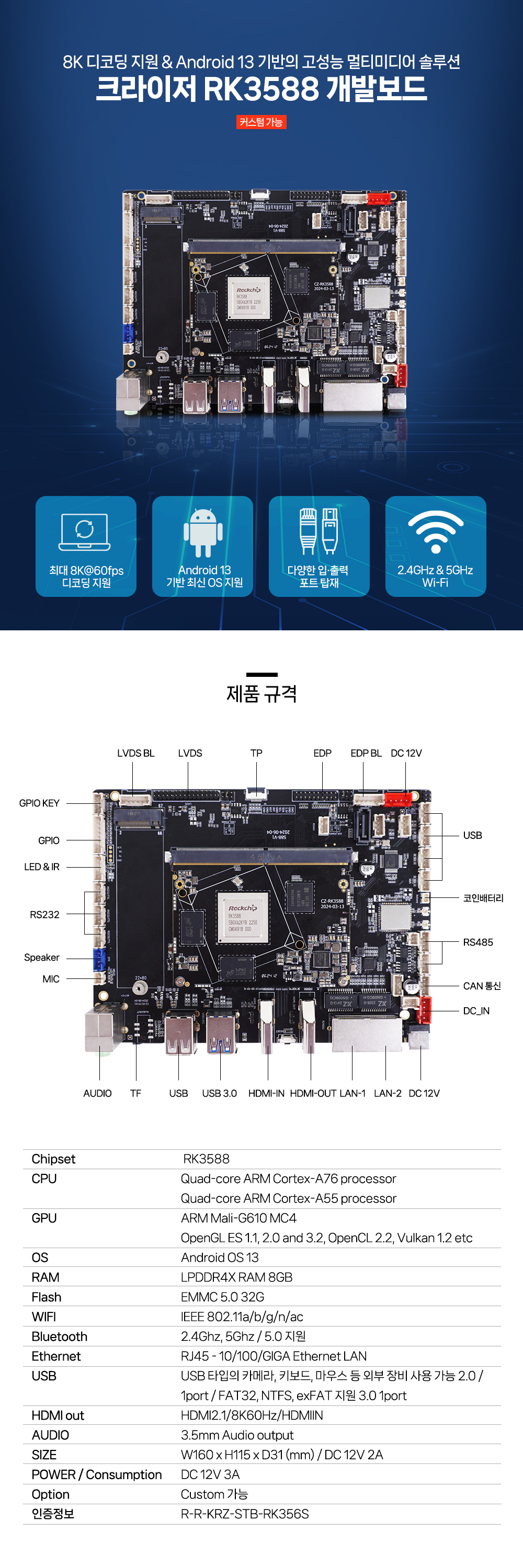 크라이저 RK3588 안드로이드 개발보드